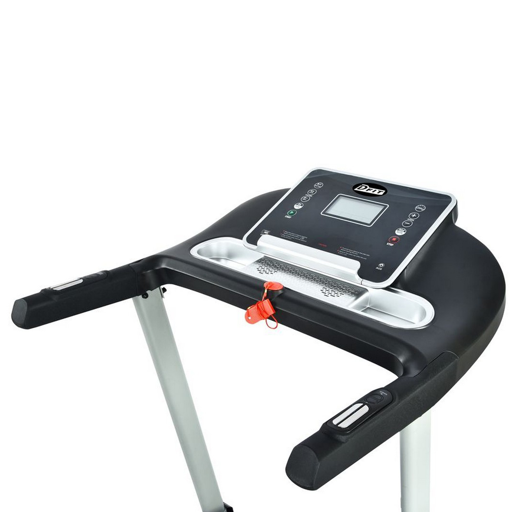 Современная беговая дорожка Dfit Pacifica – это мультифункциональный тренажер для ежедневных домашних тренировок. Большой набор встроенных программ позволяет вам и всем членам семьи тренироваться в зависимости от уровня спортивной подготовки. Складная конструкция и транспортировочные ролики обеспечивают удобное перемещение тренажера между комнатами. Тренажер подключается к сети и имеет мощный электродвигатель, который развивает скорость от 1 до 14 км/ч. Механическая регулировка угла наклона полотна имеет 3 позиции, позволяя имитировать бег в горку. Встроенные программы в количестве 24 штук позволяют вам точечно выбирать скорость бега. Система амортизации снижает нагрузку на суставы и позвоночник во время бега и ходьбы. Простая и удобная регулировка скоростей осуществляется при помощи кнопок на консоли тренажера. Бортовой компьютер с крупным дисплеем помогает отслеживать все необходимые данные: общее время тренировки, скорость, пройденное расстояние и расход калорий. Постоянное значение пульса измеряется при помощи металлических датчиков на ручках и выводится на экран. Дополнительный режим Body Fat использует базовые данные о вашей физиологии и поможет рассчитать процентное содержание жировой ткани в организме. Вы сможете отслеживать прогресс тренировок и изменения вашего организма. Для аварийных случаев экстренной остановки на консоли имеется специальный ключ, которым можно моментально остановить дорожку. Система MP3 мультимедиа состоит из двух динамиков и два основных входа для смартфона: AUX или USB. Подставка для шейкера с водой или бутылку позволяет на ходу утолить жажду, не прекращая тренировки.Особенности и преимущества: