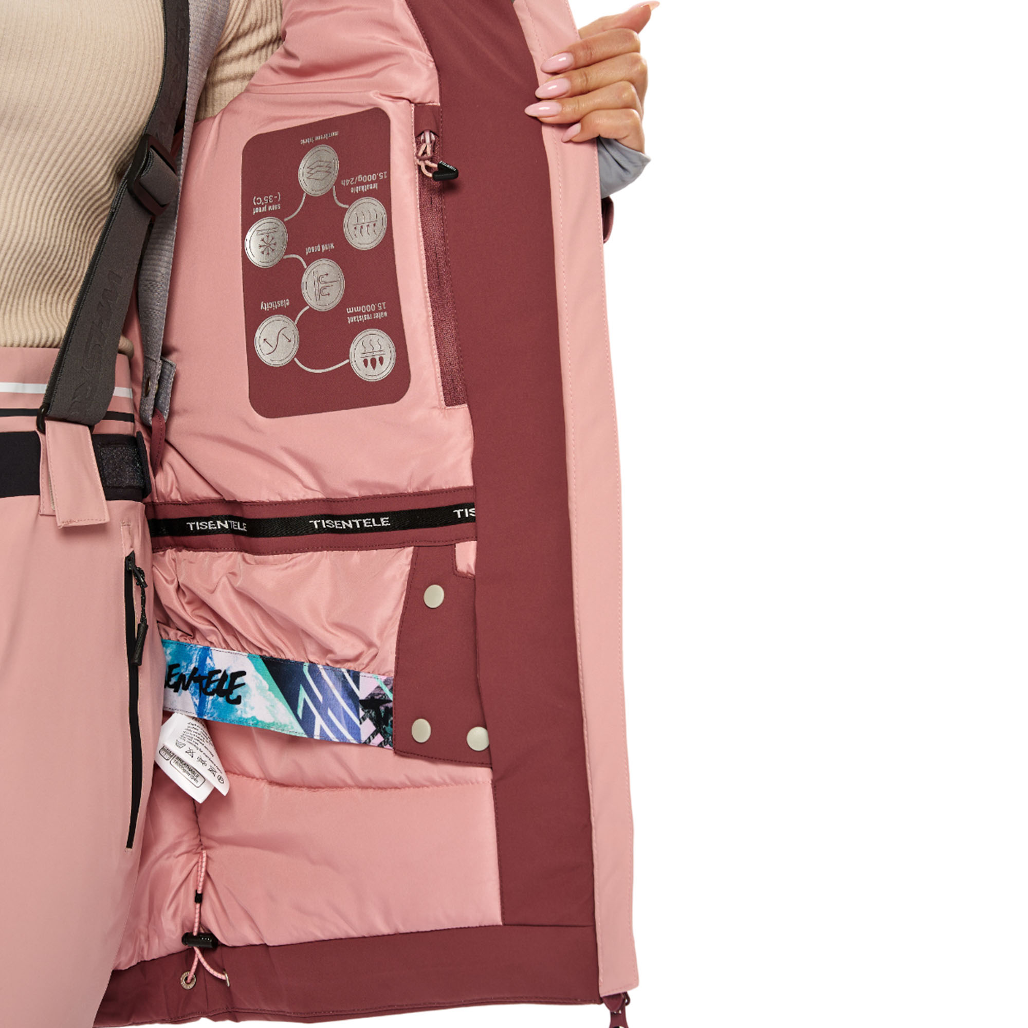 Сноубордическая куртка для женщин фирмы TISENTELE — это идеальное решение для тех, кто хочет наслаждаться зимними прогулками и активным отдыхом в горах. Горнолыжная куртка изготовлена из высококачественных материалов, которые обработаны водоотталкивающими и антибактериальными пропитками, что гарантирует надежную защиту от влаги и холода. Водонепроницаемая мембрана и эргономичный крой не стесняющий движения обеспечивает превосходную защиту одежды от проникновения влаги до 8 часов катания в условиях мокрого снега. Куртка горнолыжная может быть использована как для повседневной носки, так и для активного отдыха, туризма, прогулок. Куртка подходит для горных лыж и сноубординга.Особенности и характеристики:
